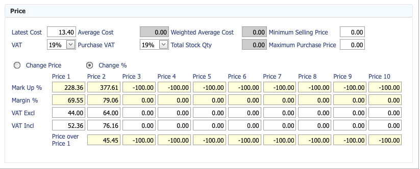 Powersoft365 supports 10 different price levels (Price 1 to Price 10).